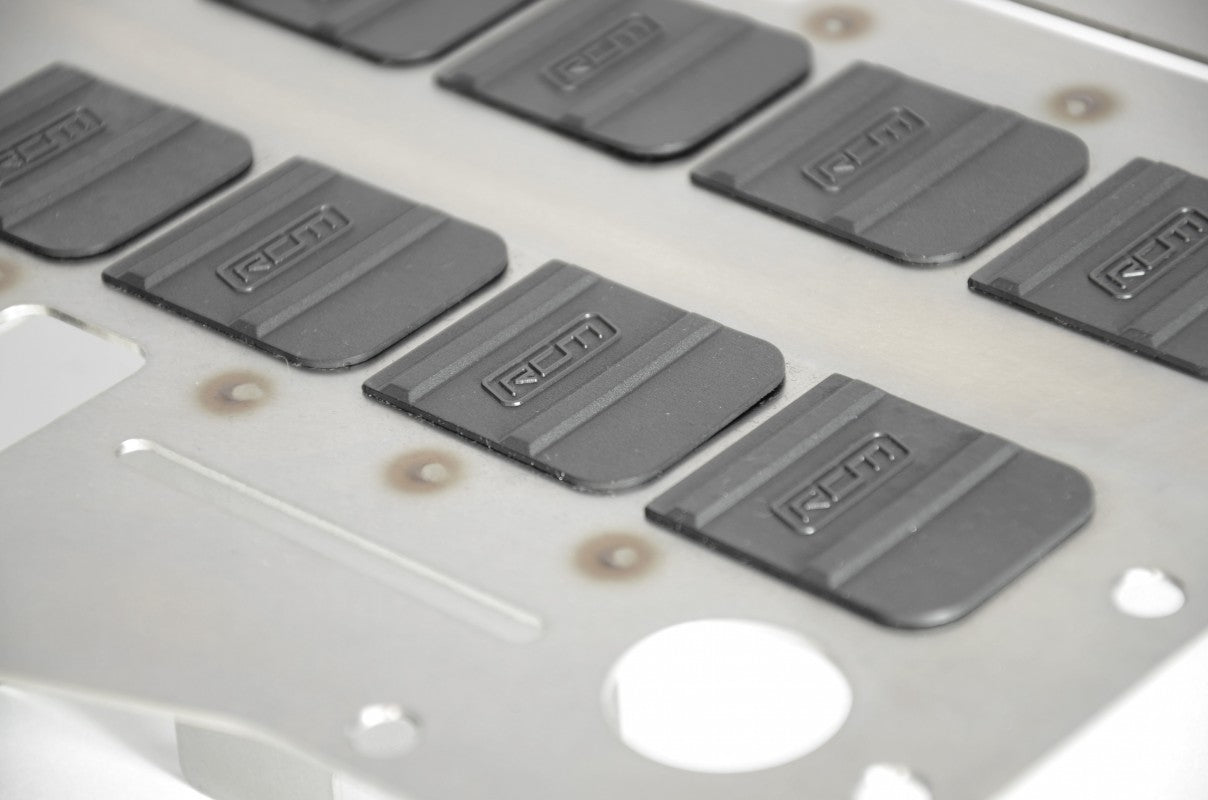 If we look at the baffle plate in detail you will notice the rubber flaps or "diverters" located all over the base. These flaps only open one way, to allow engine oil into the sump. When cornering hard the oil finds it much harder to flow out of the sump as its usual escape hatches are now closed or deleted completely, hence why a sump baffle plate is a must for those driving fast road, track days, rallying, or sprint events.